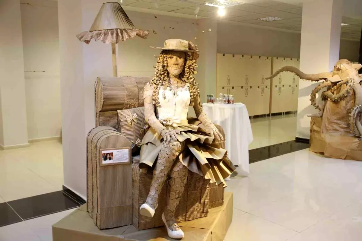 Çankırı’da üniversite öğrencilerinin atık karton ve ambalaj materyallerinden hazırladığı heykellerin yer aldığı “Karton Heykel Sergisi” ziyaretçilerin beğenisini kazandı.