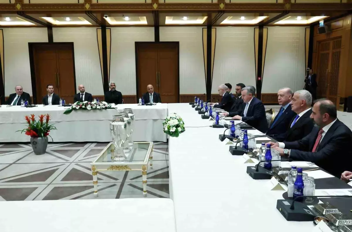 Cumhurbaşkanı Erdoğan, Cumhurbaşkanlığı Külliyesi’nde Gençlik ve Spor Bakanı Osman Aşkın Bak, Cumhurbaşkanı Dış Siyaset ve Güvenlik Başdanışmanı Akif Çağatay Kılıç, Türkiye Futbol Federasyonu (TFF) Başkanı İbrahim Hacıosmanoğlu ve Üstün Lig’e yükselen 3 futbol kulübünün liderleri, teknik heyeti ile oyuncularını kabul etti.
